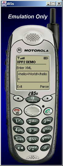 Example of XML entered into Motorola i85s and Palm m500 emulator: