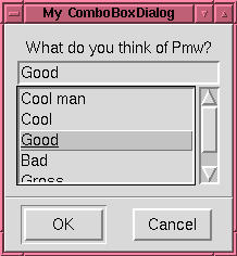 Pmw.ComboBoxDialog() - selection dialog displaying a list and an entry field