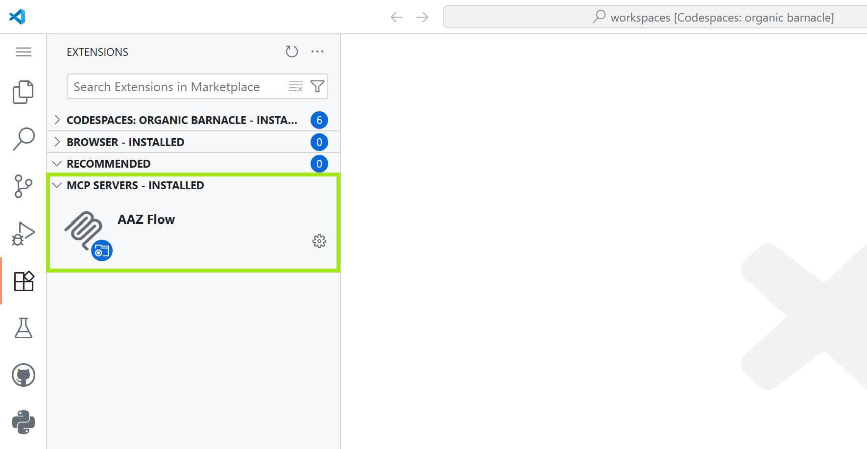 With Codespace, all pre-requisites are installed for you, including the [AAZ Flow MCP server](https://github.com/Azure/azure-cli/tree/dev/tools/aaz-flow).