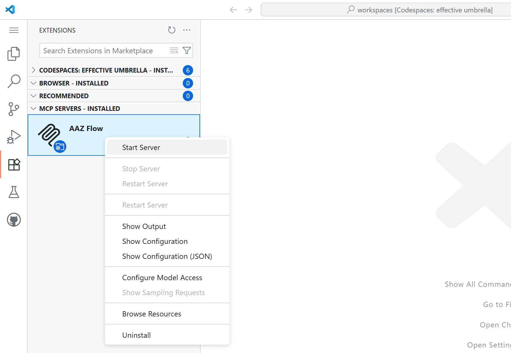 You can easily start the MCP server within your codespace environment: